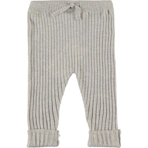 Shadow is een gebreide babybroek in grijs. Het heeft koordjes in de taille en omgeslagen pijpen.