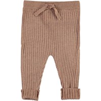 Shadow is een gebreide babybroek in bruin. Het heeft koordjes in de taille en omgeslagen pijpen.