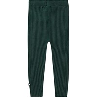 Donkergroene gebreide broek van viscose/kasjmier voor baby's en peuters. De broek zit aangesloten en heeft een geribbeld effect. Het heeft zowel een elastische tailleband als een koordje, waardoor het comfortabel is om te dragen en gemakkelijk is om aan te trekken.