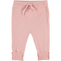 Shadow is een gebreide babybroek in roze. Het heeft koordjes in de taille en omgeslagen pijpen.