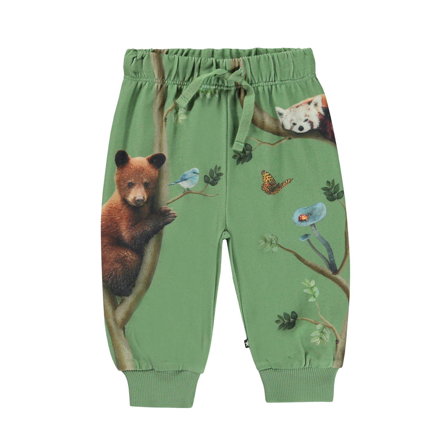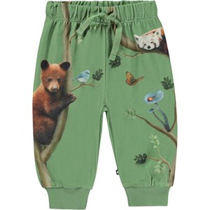 Voor de kleine kinderen een groene broek met print. De print heeft verschillende dieren die de takken van de Tree of Life verkennen. Deze broek is van 100% katoen en heeft elastiek en koordjes in de taille en ribboord aan de pijpen. Voor de perfecte set draag je het met de Eloy sweater die de "Living Tree” print heeft.