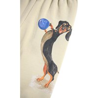 Zachte broek voor de kleintjes gemaakt van biologisch katoen. De broek is beige met een print van teckels. Het heeft een elastische tailleband met een koordje en ribboorden rond de pijpen. Het is makkelijk aan en uit te trekken en biedt genoeg ruimte om te bewegen. Combineer het met de bijpassende sweater voor een complete outfit.