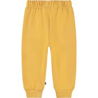 Zachte biologische katoenen broek voor de kleintjes. De broek is geel met zachte witte gezichtjes in verschillende stemmingen op de knieën. De broek heeft elastiek en een koordje in de taille en ribboorden rond de pijpen. Het is makkelijk aan en uit te trekken en biedt veel bewegingsruimte. Combineer het met de bijpassende sweater voor een complete outfit.