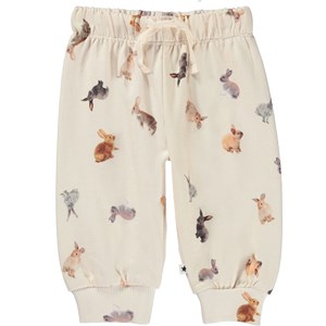 Voor de kleine kinderen een gebroken witte broek met een print in verschillende kleuren die kleine schattige en nieuwsgierige konijntjes, die rondhuppelen om de wereld te ontdekken, laat zien. Deze broek is van 100% katoen en heeft elastiek en koordjes in de taille en ribboord aan de pijpen. Voor de perfecte set draag je het met de Disc sweater die dezelfde print heeft.