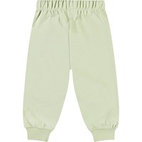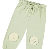 Zachte broek van biologisch katoen voor de kleintjes. De broek heeft een elastische taille met koordje en ribboor rond de enkels. Het is gemakkelijk aan en uit te trekken, waardoor je veel bewegingsvrijheid heeft. Deze stijl heeft een ongeborstelde binnenkant, waardoor het aangenaam koel is op een warme dag. De broek is lichtgroen met een zachte smiley op de knietjes. Combineer het met de bijpassende sweater voor een complete outfit.
