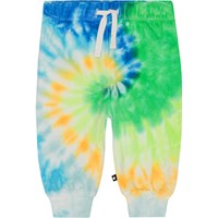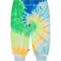 Groene, gele en blauwe tie-dye broek van biologisch katoenenfluweel. Het is comfortabel en gemakkelijk aan te trekken en je kan je er makkelijk in bewegen. Dit model kan als complete set met de bijpassende trui worden gekocht. De tie-dye print van Molo is uniek en met de hand gemaakt, waardoor de print per stijl kan verschillen