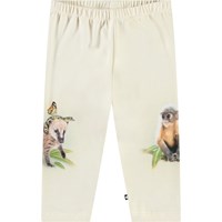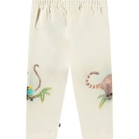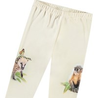 Broek van biologisch katoenen jersey voor de kleintjes. Het is aansluitend met een elastische taille. De broek is lichtbeige met een print van dieren uit de jungle op de pijpen.