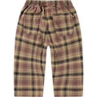 Kleurrijke geruite broek van biologisch katoen voor baby's en peuters. De broek heeft een ruimvallende pasvorm en is voorzien van zowel voor- als achterzakken. Het heeft ook een elastische tailleband, waardoor het gemakkelijk aan en uit te trekken is. De broek is lichtgewicht en luchtig, waardoor er veel bewegingsvrijheid is. Er is ook een schattig geborduurde smiley op de zak.