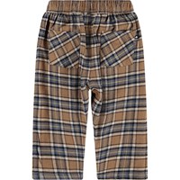 Bruine en blauwe geruite broek voor de kleintjes gemaakt van biologisch katoen. De broek heeft een ruimvallende pasvorm met voor- en achterzakken en een elastische taille om het gemakkelijk aan en uit te trekken. Het lichte en luchtige ontwerp zorgt voor veel bewegingsruimte en op de zak vind je een klein geborduurd lachend gezichtje. Combineer de broekjes met de bijpassende sweater voor een complete en comfortabele set.