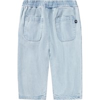 Blauwe spijkerbroek voor de kleintjes gemaakt van biologisch katoen. De broek heeft een losse pasvorm, voor- en achterzakken, en een elastische tailleband waardoor ze gemakkelijk aan en uit te trekken zijn. Ze zijn licht en comfortabel, dus perfect voor dagelijks gebruik.