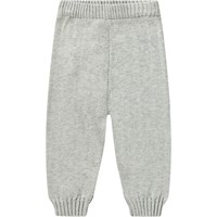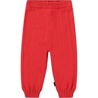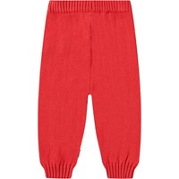 Voor de baby's en peuters een rode gebreide broek van katoen/wol met rib rond de taille en pijpen.