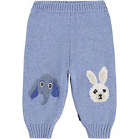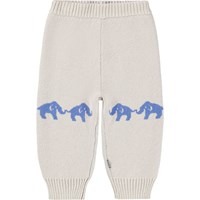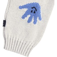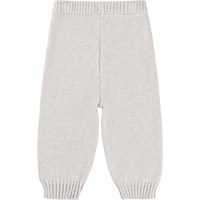 Beige gebreide broek voor de kleintjes gemaakt van een zachte geribbelde katoen en wol met vrolijke handjes op de knieën. De broek heeft een elastische tailleband om het makkelijk aan en uit te trekken en ribboorden rond de pijpen. Combineer het met de bijpassende trui voor een complete set.