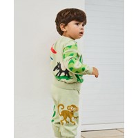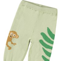 Gebreide broek van biologisch katoen voor de kleintjes. De broek heeft ribboorden rond de taille en pijpen, wat zorgt voor een comfortabele pasvorm. Gebreid in lichtgroen en versierd met dieren uit de jungle. Combineer het met de vest voor een complete look.