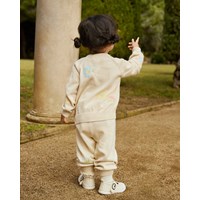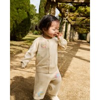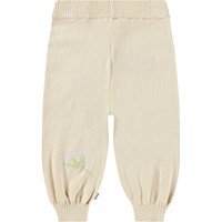 Gebreide broek van biologisch katoen voor de kleintjes. De broek heeft ribboorden rond de taille en pijpen, wat zorgt voor een comfortabele pasvorm. Gebreid in lichtbeige en versierd met mooie bloemen. Combineer het met de vest voor een complete look.