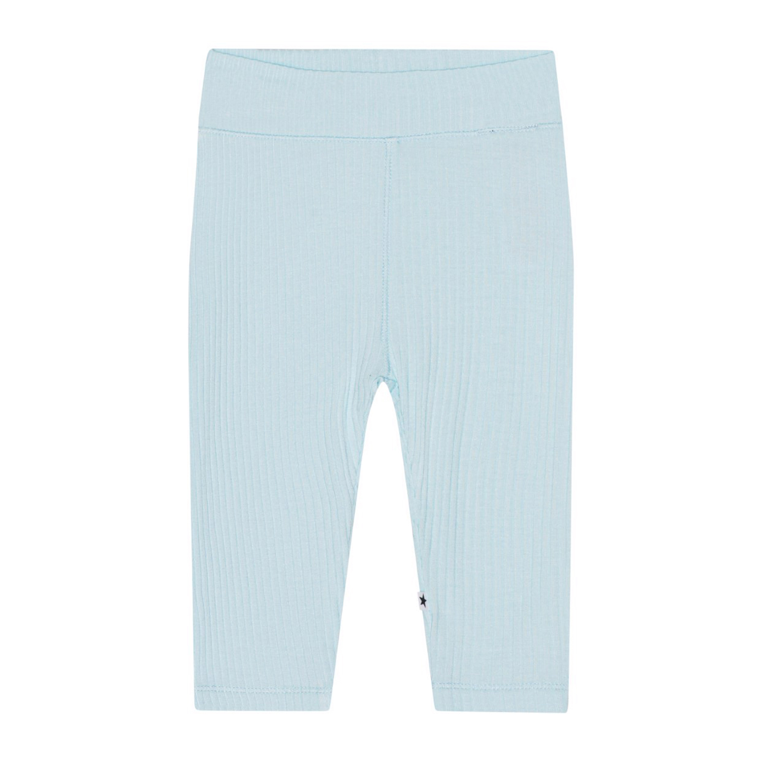 Voor kleine kinderen een lichtblauwe jersey legging in zachte viscose. Deze legging heeft een nauwsluitende pasvorm en een brede rib in de taille. De rekbare rib zorgt voor een comfortabele pasvorm.