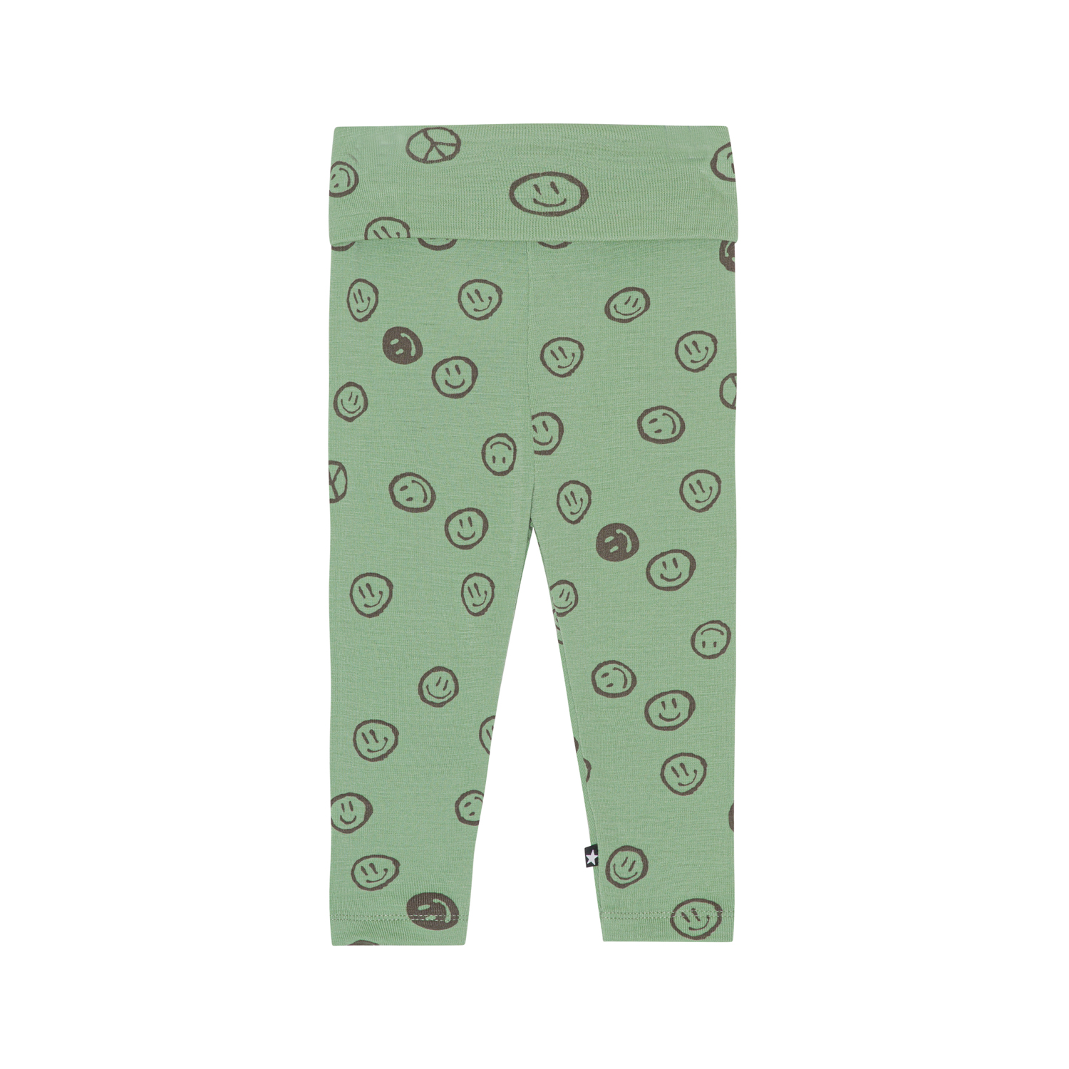 Voor de kleine kinderen een wollen groene legging met een print van kleine smiley’s en peace tekens. Deze legging is van 100% merinowol. Voor de perfecte set draag je het met de Eli longlseeve die dezelfde print heeft.