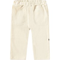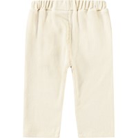 Zachte, gebroken witte broek van rib fluweel voor baby's en peuters. De broek heeft een ruimvallende pasvorm en voorzakken met details. Het heeft ook een elastische taille, waardoor het gemakkelijk is aan en uit te trekken.