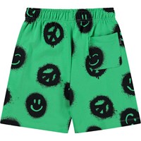 Adian is een groene unisex short met een print van een vredesteken en smileys.
