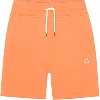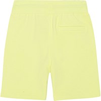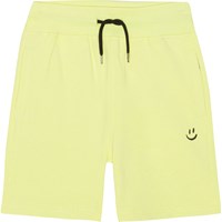 Gele wijde short van zacht biologisch katoenen jersey. De short heeft een ruimvallende pasvorm met een brede elastische taille met een koordje voor een goede pasvorm. De short heeft steekzakken in de zijnaad, een enkele achterzak en een kleine zwarte geborduurde peace teken dat bij het koordje past.