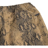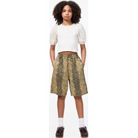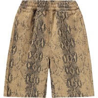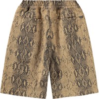 Bruine korte broek met een slangenprint gemaakt van zachte katoen met een brede elastische tailleband en een interne koordje in de taille voor een verstelbare pasvorm. De korte broek heeft zakken aan de zijkanten en aan de achterkant, evenals een ruimvallende en relaxte uitstraling die goede bewegingsvrijheid biedt.