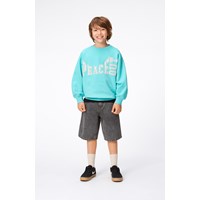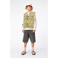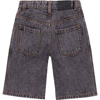 Zwarte knielange spijkerbroek van 50% biologisch katoen. Het heeft voor- en achterzakken, een drukknoop en ritssluiting en riemlusjes. Maten 92-134 hebben voor de perfecte pasvorm een binnenknoop om de taille aan te passen, waardoor een kind de korte spijkerbroek langer kan dragen.