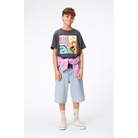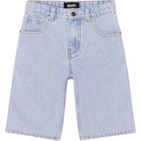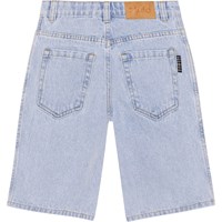 Lichte knielange spijkerbroek van 50% biologisch katoen. Het heeft voor- en achterzakken, een drukknoop en ritssluiting en riemlusjes. Maten 92-134 hebben voor de perfecte pasvorm een binnenknoop om de taille aan te passen, waardoor een kind de korte spijkerbroek langer kan dragen.
