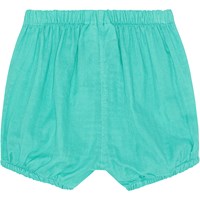 Turquoise bloomer broek van biologisch katoen. Het heeft elastiek in de taille en bij de pijpen, waardoor het gemakkelijk is om aan te trekken en je kan je er goed in bewegen. Een heerlijke kleine broek voor een warme zomerdag.