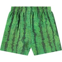 Short van biologisch katoen voor de kleintjes. Het heeft een elastische taille en een ruimvallende pasvorm zodat je het makkelijk aan en uit kan trekken. De short is groen met een watermeloenprint.