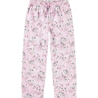 Paarse pyjama van biologisch katoen met lange broek en elastische taille met koordje. Het bovenstuk heeft lange mouwen, een kraag, een borstzakje en knopen aan de voorkant. De pyjama heeft een all-over print van schattige poezen en een normale pasvorm.