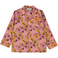 Roze pyjama met een bloemenprint die simpel, grafische is en met de hand getekend. Op de print staan heel veel verschillende bloemen zoals zonnebloemen en dahlia’s in roze tinten en geel. Je valt in slaap in een bedje van bloemen. Het setje is van 100% katoen. De pyjamabroek heeft elastiek en koordjes in de taille en heeft omslagen pijpen. Het shirt heeft een knoopsluiting aan de voorkant, een borstzak en randbies voor een mooie afwerking.