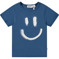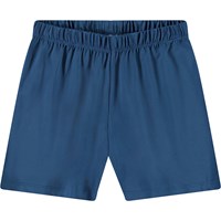 Blauwe pyjama met korte mouwen en pijpen van rekbaar biologisch katoen. De set is verdeeld in twee delen en bestaat uit een los t-shirt met een ronde hals en een short met een elastische tailleband, waardoor het comfortabel zit. De set heeft op de voorkant een lachende witte smiley.