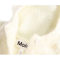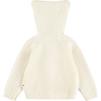 Gebroken witte vest voor de kleintjes gemaakt van een zachte wolmix. Het vest heeft een knoopsluiting aan de voorkant, een capuchon met teddyberenoren en ribboorden rond de mouwen en taille. Combineer het met de bijpassende broek voor een complete set.