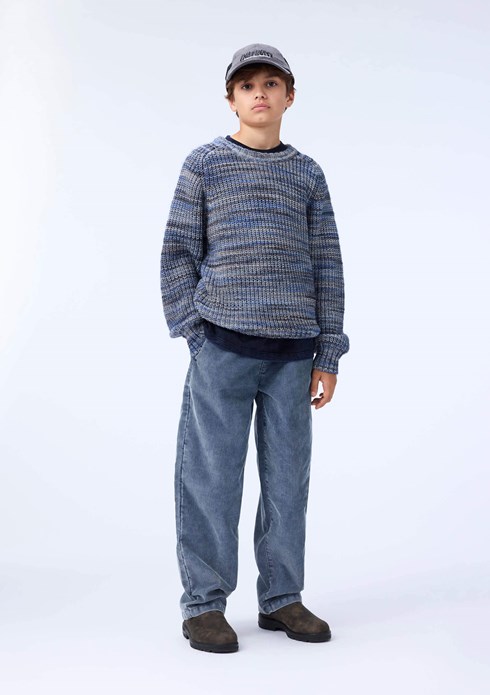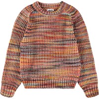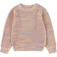 Kleurrijke gebreide trui in roze tinten gemaakt van een wolmix. De trui heeft raglanmouwen en een ronde hals. De trui heeft ribboorden rond de hals, mouwen en taille. Het heeft een normale pasvorm.