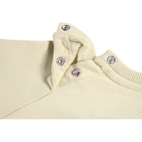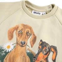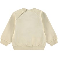 Beige sweater voor de kleintjes gemaakt van zacht biologisch katoen met op de voorkant een hondenprint. De sweater heeft raglanmouwen, ribboorden rond de taille en mouwen en een ronde hals met twee drukknopen bij de nek om het gemakkelijk aan en uit te trekken. Combineer het met de bijpassende broek voor een complete set.