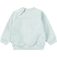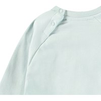 Sweater van zacht biologisch katoen voor de kleintjes. De sweater heeft raglan mouwen, ribboord, ronde hals en drukknopen achter op de schouder voor het makkelijk aan en uittrekken. Deze stijl heeft een ongeborstelde binnenkant, waardoor het aangenaam koel is op een warme dag. De sweater is lichtblauw met een schattige koalaprint.