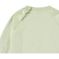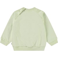 Sweater van zacht biologisch katoen voor de kleintjes. De sweater heeft raglan mouwen, ribboord, ronde hals en drukknopen achter op de schouder voor het makkelijk aan en uittrekken. Deze stijl heeft een ongeborstelde binnenkant, waardoor het aangenaam koel is op een warme dag. De sweater is lichtgroen met op de voorkant een zachte smiley. Voor een complete set combineer je het met de bijpassende broek.