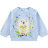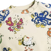 Crèmekleurige, zachte sweatshirt voor de kleintjes gemaakt van biologisch katoen met een muziekprint. De sweatshirt heeft raglanmouwen, geribbelde randen en een ronde halslijn met drukknoopjes aan de achterkant, om het gemakkelijk aan en uit te trekken.