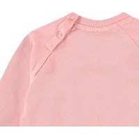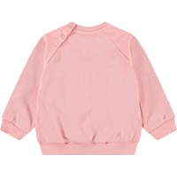 Sweater van zacht biologisch katoen voor de kleintjes. De sweater heeft raglan mouwen, ribboord, ronde hals en drukknopen achter op de schouder voor het makkelijk aan en uittrekken. De sweater is roze met op de voorkant een zachte smiley. Voor een complete set combineer je het met de bijpassende broek.