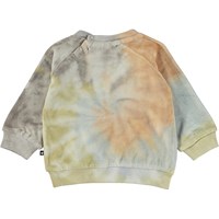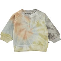 Disc is een babytrui van fluweel met een tie-dye print en een klein geborduurde smiley op de borst. Al Molo’s tie-dye worden met de hand gemaakt, waardoor elk product zijn eigen unieke uitstraling heeft. De trui heeft drukknopen aan de achterkant bovenin. Draag het met de bijpassende baby joggingbroek.