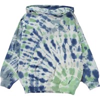 Maxx is een unisex hoodie met een tie-dye patroon in blauw en groen. De hoodie heeft een buidelzak aan de voorkant en een ribboord rond de onderkant en mouwen. Al Molo’s tie dye worden met de hand gemaakt en dus heeft elk product zijn eigen unieke uitstraling.