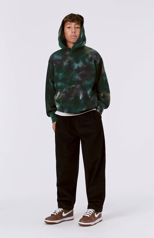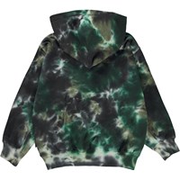 Groene hoodie met een tie-dye print in verschillende tinten groen. Deze hoodie is van 100% katoen en heeft een buidelzak, ribboord aan de mouwen en onderkant en een ruimvallende pasvorm. Voor de perfecte set draag je de hoodie met de Adan joggingbroek die dezelfde print heeft. De tie-dye print van Molo is uniek en handgemaakt, wat betekent dat deze van stijl tot stijl kan verschillen.