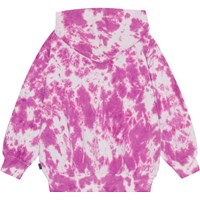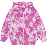 Paarse en witte tie-dye hoodie van biologisch katoenen jersey met ritssluiting. Het heeft een buidelzak en ribboord rond de mouwen en onderkant. De hoodie heeft een ruimvallende pasvorm, waardoor het stoer en comfortabel is. Voor een perfecte set kun je het dragen met de korte broek die dezelfde kleur heeft. De tie-dye print van Molo is uniek en met de hand gemaakt, waardoor de print per stijl kan verschillen.