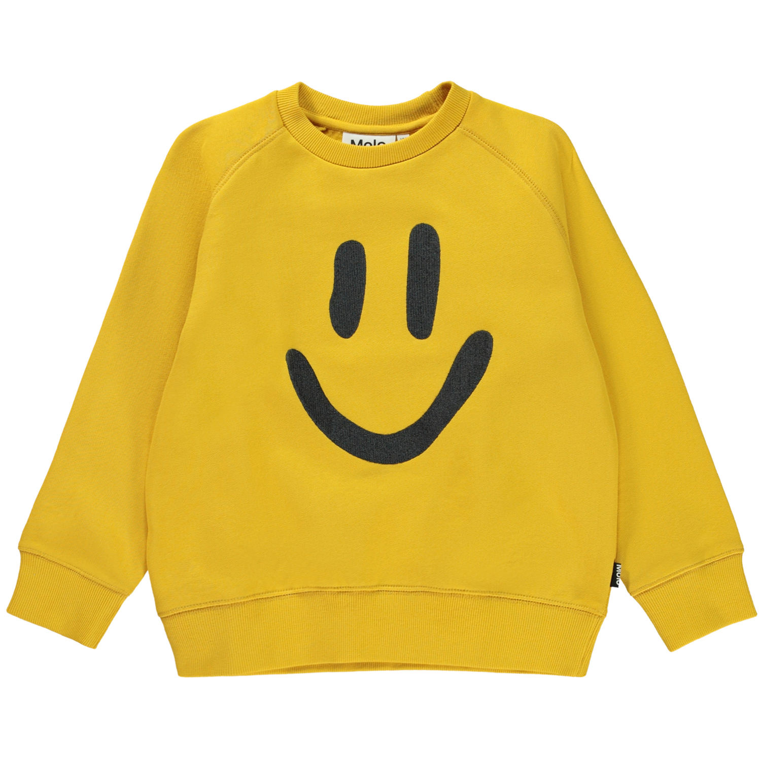 Mike is een gele unisex trui met op de voorkant een print van een smiley.