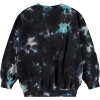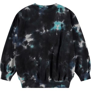 Tie-dye sweater in blauwe tinten gemaakt van biologisch katoen. De sweater heeft een ronde hals met geribbelde boord, evenals geribbelde manchetten en zoom. Het heeft een ruimvallende pasvorm en een all-over tie-dye print. Onze tie-dye is handgemaakt, waardoor er een uniek patroon ontstaat dat per stijl kan variëren.