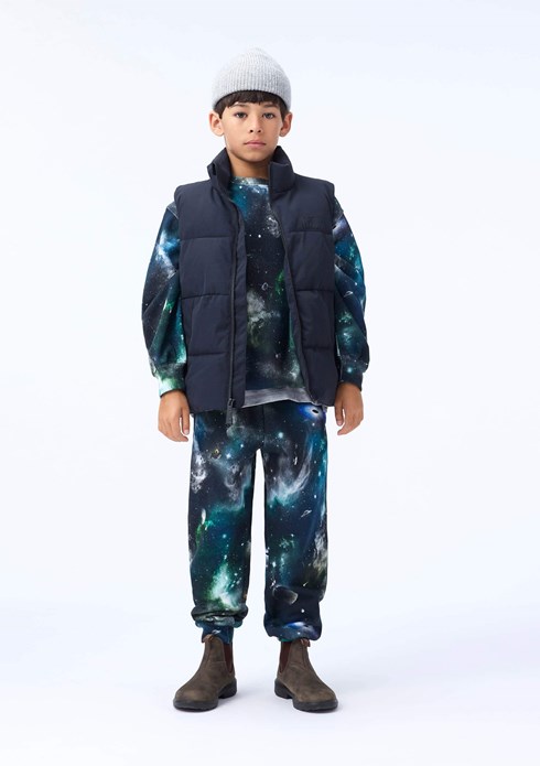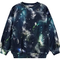 Stoere sweater gemaakt van zacht biologisch katoen met een ruimteprint. De sweater heeft ribboorden rond de hals, mouwen en taille. De sweater heeft een ruimvallende pasvorm.