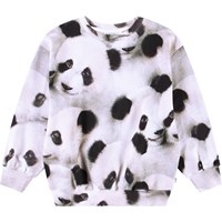Sweater van zacht biologisch katoen met ribboord rond de hals, mouwenen onderkant. De sweater heeft een ruimvallende pasvorm met een all over pandaprint  in zwart en wit. Voor een complete set combineer je het met de bijpassende broek.