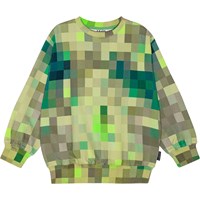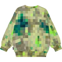Groene sweater van biologisch katoen met een gevoerde binnenkant, waardoor het zacht en warm is om te dragen. De sweater heeft een ruimvallende pasvorm, een ronde hals en geribbelde manchetten en zoom. De all-over print bestaat uit grote pixels in groene tinten.