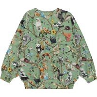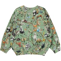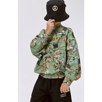 Groene sweater met print. Net als het wortels van de boom zijn alle paddenstoelen, vogels, bomen en beren, groot en klein, met elkaar verbonden. Daarom moeten we op elkaar letten. Deze sweater is van 100% katoen en heeft een ronde hals met een ribboord en ribboord aan de mouwen en onderkant. Het heeft een ruimvallende pasvorm. Voor de perfecte set draag je de sweater met de Adan joggingbroek die dezelfde print heeft.