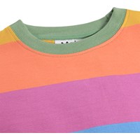 Gestreepte kleurrijke sweater gemaakt van zacht biologisch katoen met ribboorden rond de hals, mouwen en onderkant. De sweater heeft een ruimvallende en relaxte pasvorm met brede horizontale strepen.