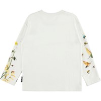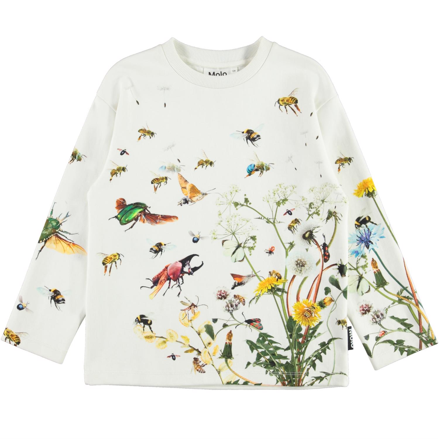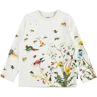 Mountoo is een wit shirt met lange mouwen en een print van insecten en bloemen.